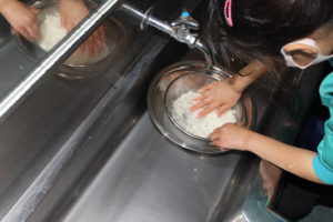 5月から育ててきたバケツ稲のお米を研いで土鍋で炊いて食べました。園児達は「魔法の味がする」とお話しをしておりました。