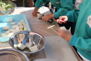 年長の「さくら・組」が秋から育ててきた大根を調理してお味噌汁にして食べました。お裾分けに年少組さんにも食べてもらいました。