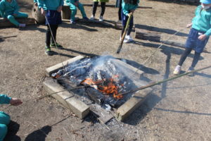 子供たちは冒険の森から竹を拾ってきて火にくべたら「パン・パン」と音が鳴ったので、子供たちは驚いたり不思議がっていたので、なぜ音が鳴ったのか説明してあげたりして楽しくて遊ぶことが出来ました。