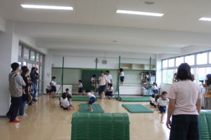20日に安全体育の保育参観を行いました。安全体育とは、自分の身を守る体育遊びです。土曜日の参観でしたので大勢の保護者の方が来ていただき 大変嬉しく思います。子供たちは一生懸命頑張っていました。次回の参観も楽しみです。