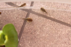 幼稚園にカブトエビがやってきました。カブトガニに少し似ていて、いままで見たこともないエビです。子ども達は興味津々と眺めていました。